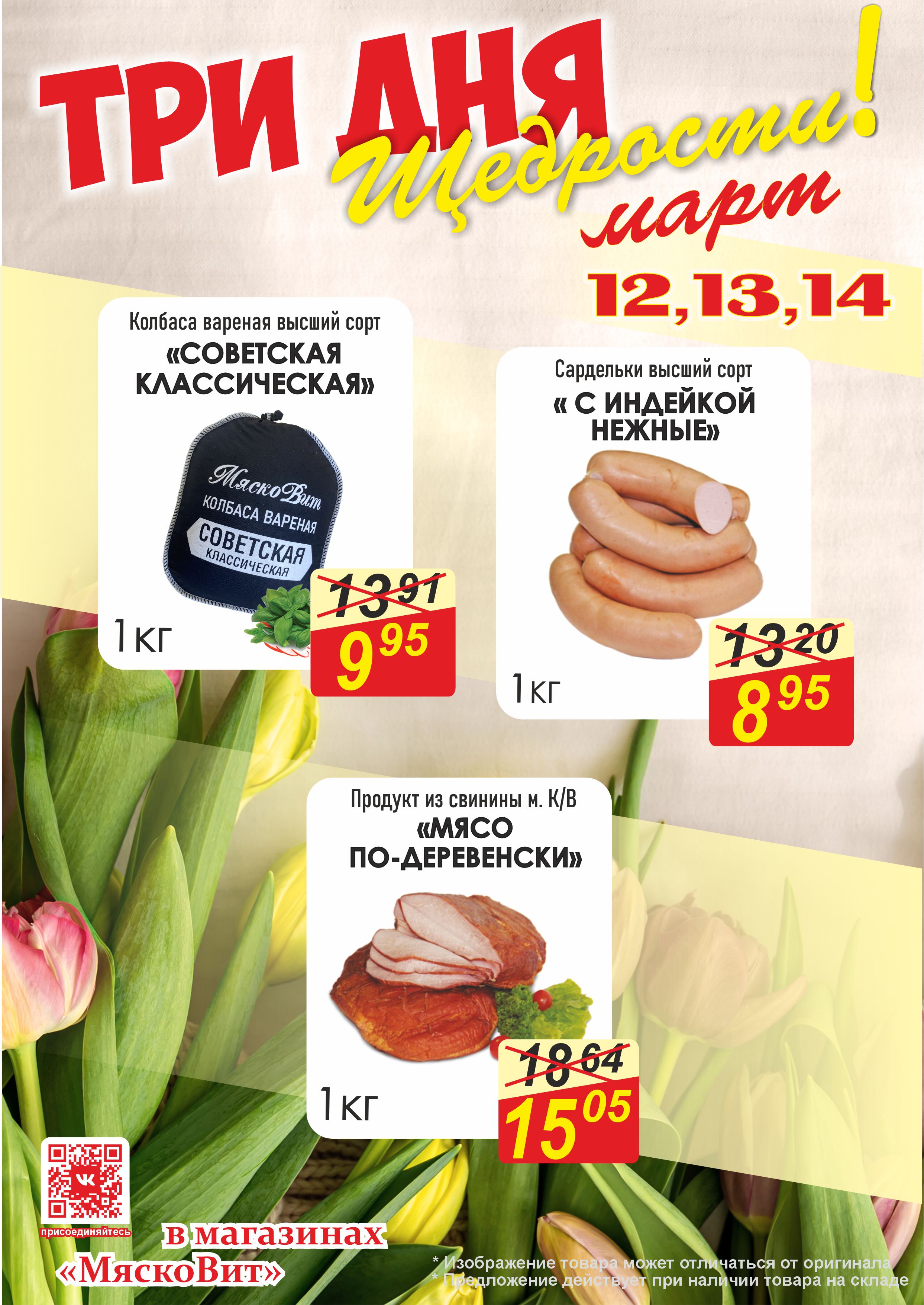 12, 13, 14 марта в магазинах фирменной сети «МяскоВит» будет вкусно при любой погоде! Приглашаем за покупками!